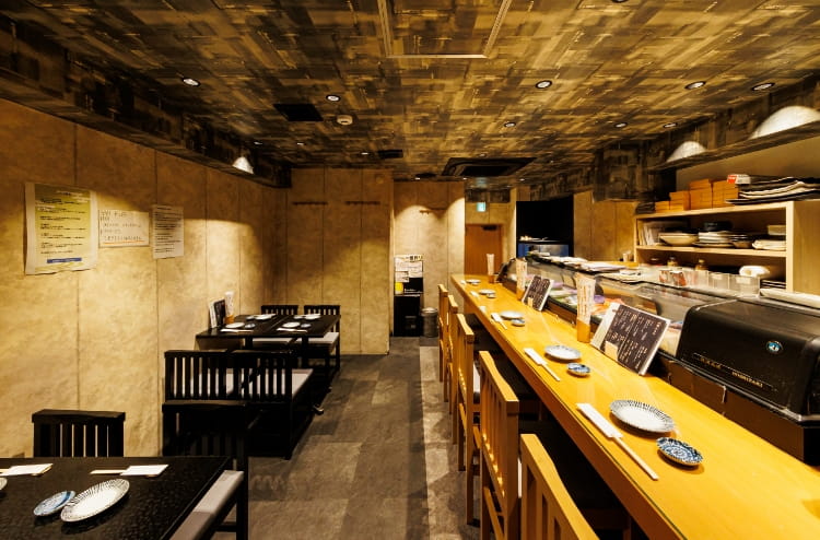 西中島南方駅から徒歩2分の「すしの助」は、仕事帰りにもふらりと立ち寄りやすい寿司処です。店内には、職人の手仕事を間近に愉しめるカウンター9席と、ゆったり過ごせる4名掛けテーブル2卓をご用意。モダンでおしゃれな雰囲気がありながらも肩肘張らずに過ごせるため、普段使いから少し特別な夜まで心地よく馴染みます。18時から翌4時まで営業しているので、遅い時間の一軒や二軒目にも頼れる一店です。