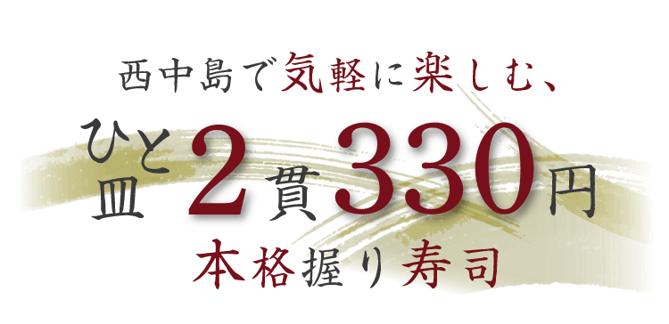 当店の寿司は、小さめのシャリで食べやすく仕立てた“こまシャリ”が特長です。口に運びやすく、それでいてしっかりと満足感を味わえる絶妙なバランスにこだわっています。赤酢を使ったシャリは、鮮魚の旨みをすっと引き立て、後味は軽やか。仕入れにも一切妥協せず、自信を持ってお出しできるネタだけを揃えています。さらに、すべて一皿2貫330円(税込)から気軽にお愉しみいただけます。